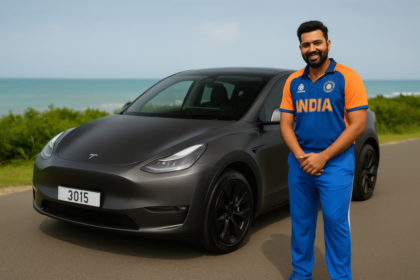 Rohit Sharma Buys Tesla Model Y — Stealth Grey EV with Special ‘3015’ Number Plate रोहित शर्मा की नंबर प्लेट क्या कहती है।